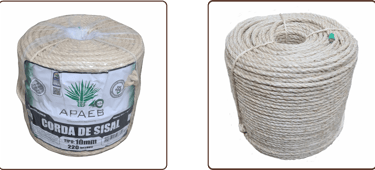 - Cordas produzidas na cor Natural - Embaladas em carretéis de papelão com 28cm de altura x 27cm de diâmetro da aba - Disponível nas Cordas de 6mm (com 440m), 8mm (com 220m), 10mm (com 140m) - Composição: 100% fibra de sisal