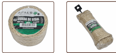 - Cordas produzidas na cor Natural - Embaladas em Rolos - Disponível de 5mm a 50mm - Composição: 100% fibra de sisal