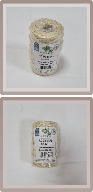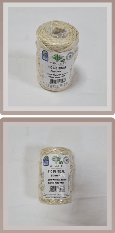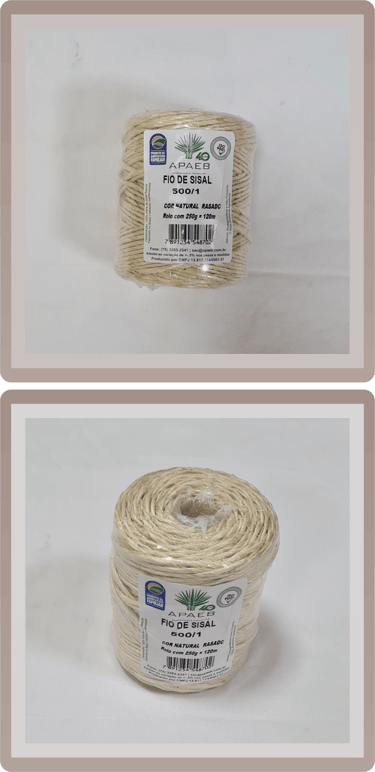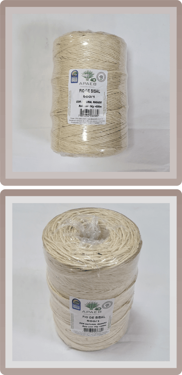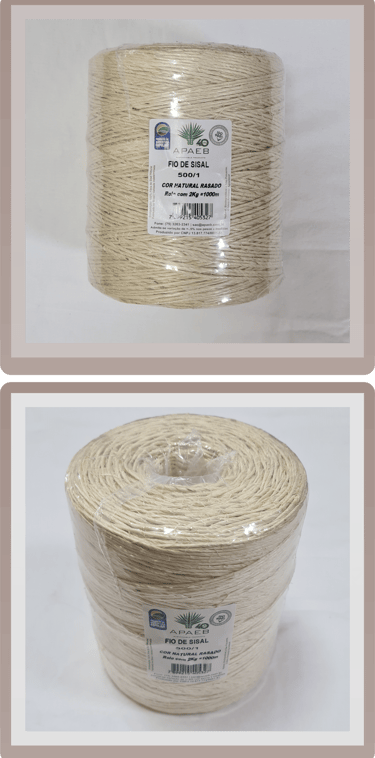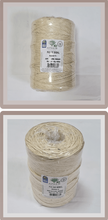 A nossa linha de Fios e Cordas é composta por Fios Naturais (Fios 100% sisal, comercializados em bobinas ou novelos de 100g a 4000g, com espessuras variando de 1,7mm a 5,8mm), Fios Tingidos (Fios com as mesmas especificações dos naturais, mas em diversas cores vibrantes e disponíveis em bobinas de 100g a 2000g) e também Cordas de Sisal (Cordas em cor natural, sem acabamento, com espessuras que vão de 5mm a 50mm e comercializadas em rolos de 100m ou 220m).