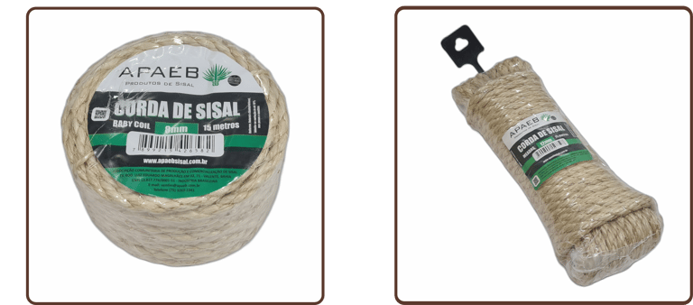 - Rolos Baby Coil com 15m - Corda em meadas com 15m - Disponível de 6mm a 12mm - Composição: 100% fibra de sisal