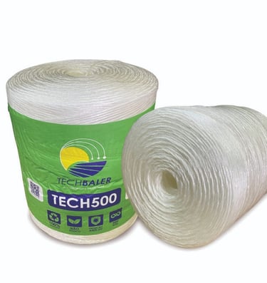 Importado de Portugal, assim como os outros fios TECHBALER, o TECH500 foi testado e aprovado por todo o mundo, tornando-se reconhecido pela sua versatilidade, suavidade e pela ótima relação custo/rendimento no acondicionamento das colheitas em formatos de menor dimensão.